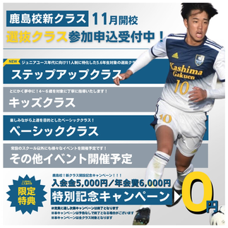 この度、カシマアカデミーFCでは小学5.6年生を対象に、ジュニアユース年代へのスムーズな移行を目指した、11人制に特化したステップアップクラスを開校する運びとなりました。